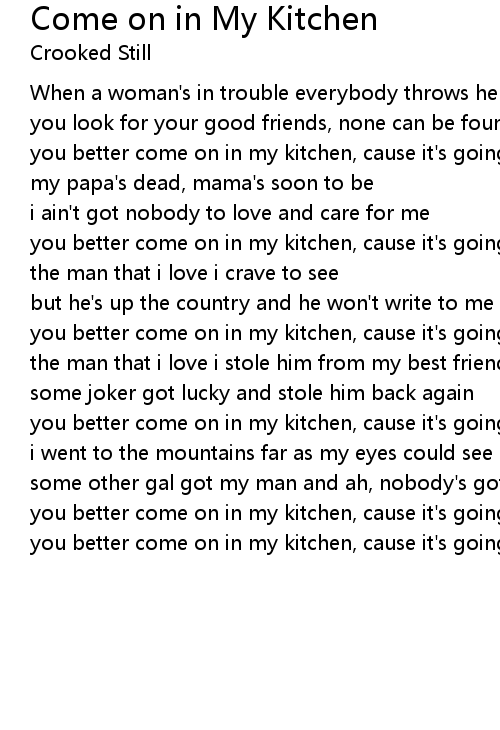 you better come on in my kitchen, cause it's going to be raining outdoors |