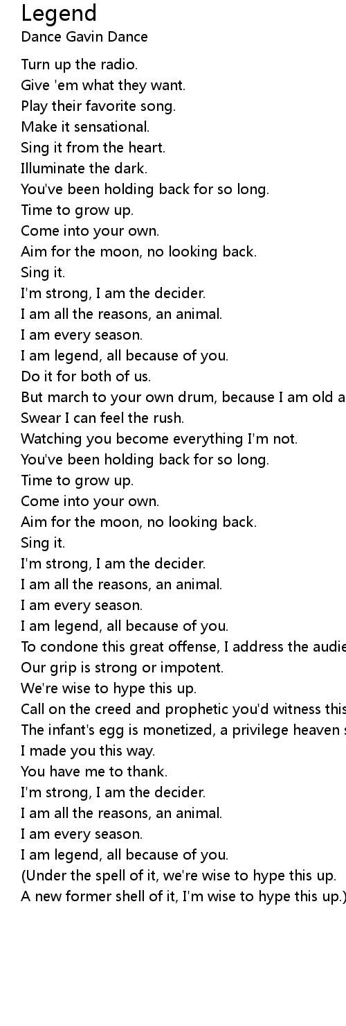 I am legend, all because of you. |