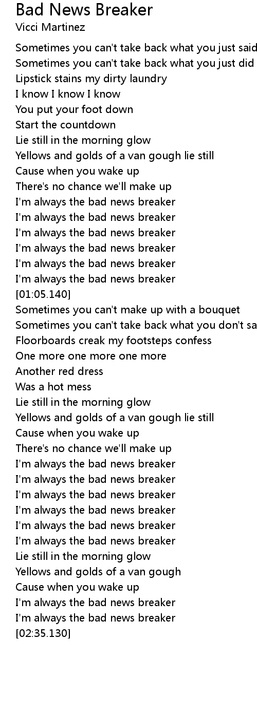 I'm always the bad news breaker |