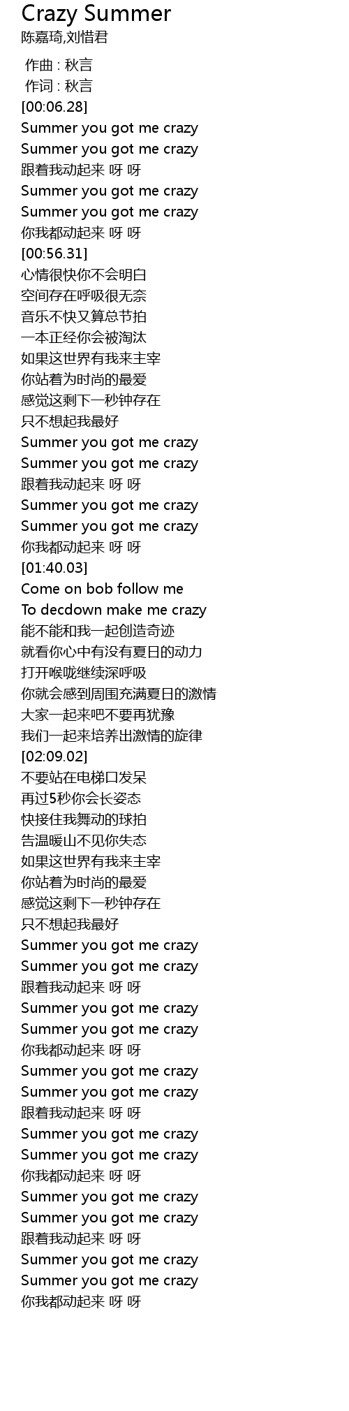 | [02:03.34] | 你就会感到周围充满夏日的激情 |