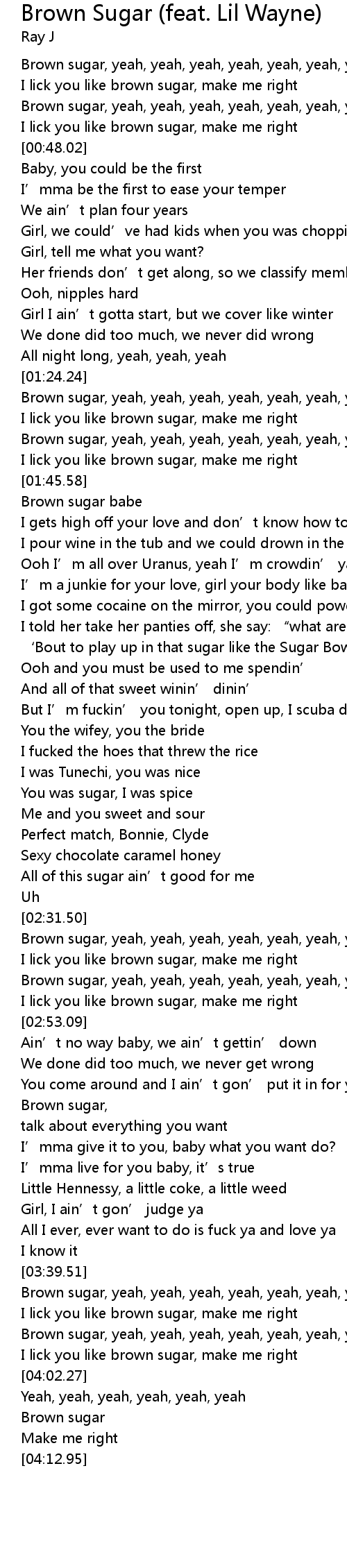 | [02:43.49] | Brown sugar, yeah, yeah, yeah, yeah, yeah, yeah, yeah |