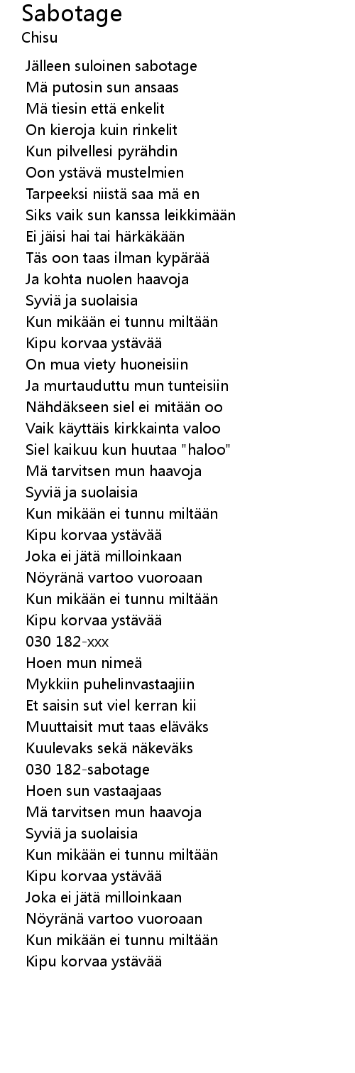 | [00:40.218] | J lleen suloinen sabotage |