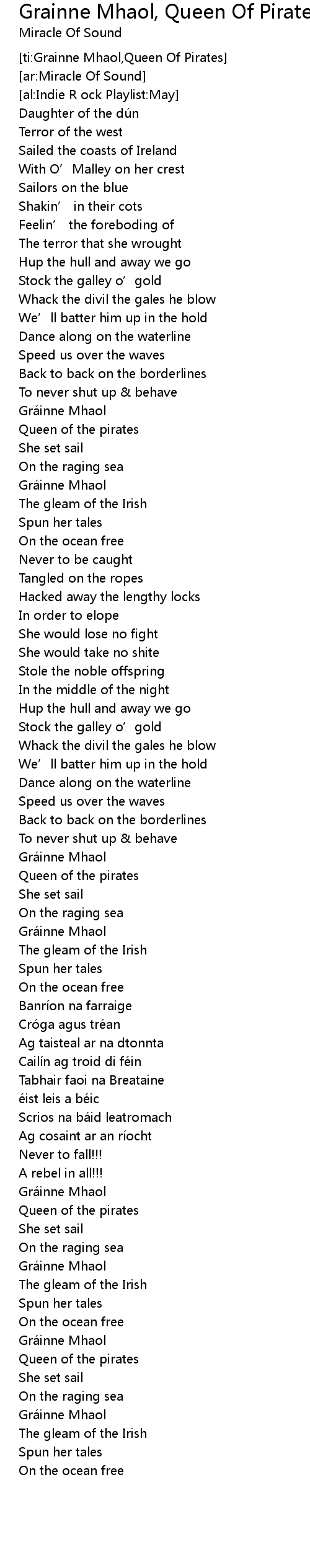 | Song | Grainne Mhaol, Queen Of Pirates |
