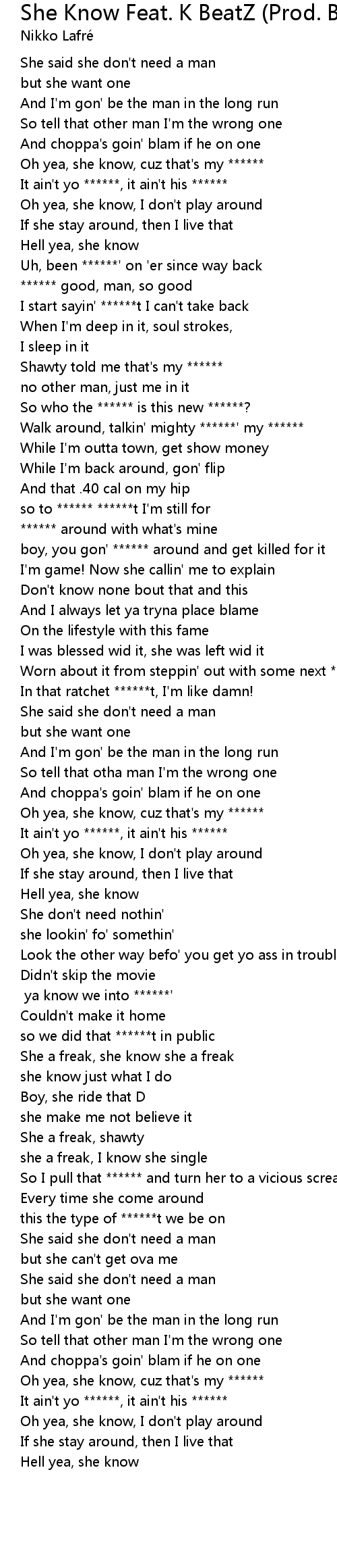She Know Feat. K BeatZ (Prod. By K BeatZ) Lyrics