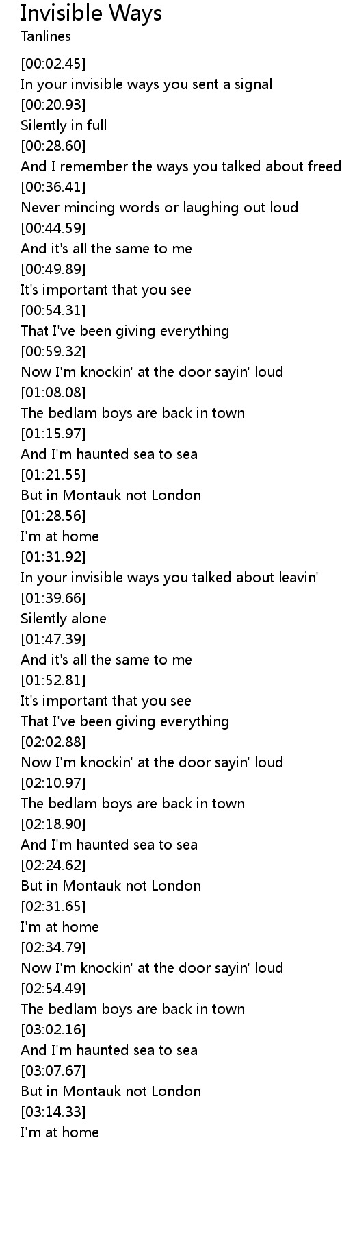 In your invisible ways you talked about leavin' |