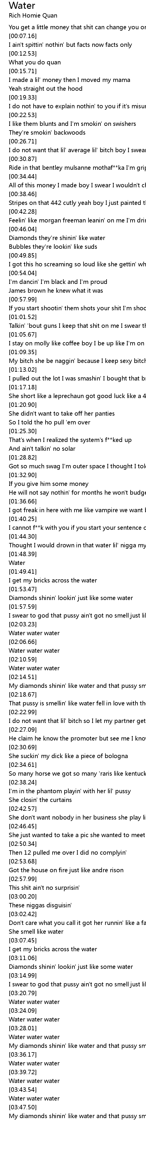 My diamonds shinin' like water and that pussy smellin' like water |