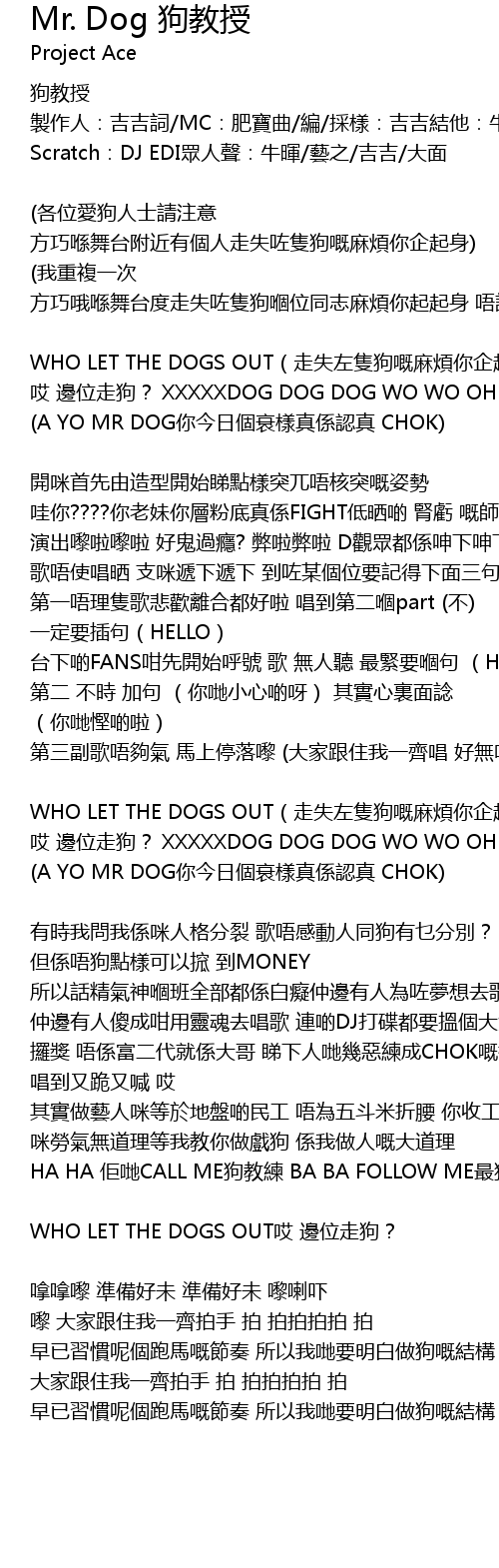 | 哎 邊位走狗? XXXXXDOG DOG DOG WO WO OH MR DOG | |