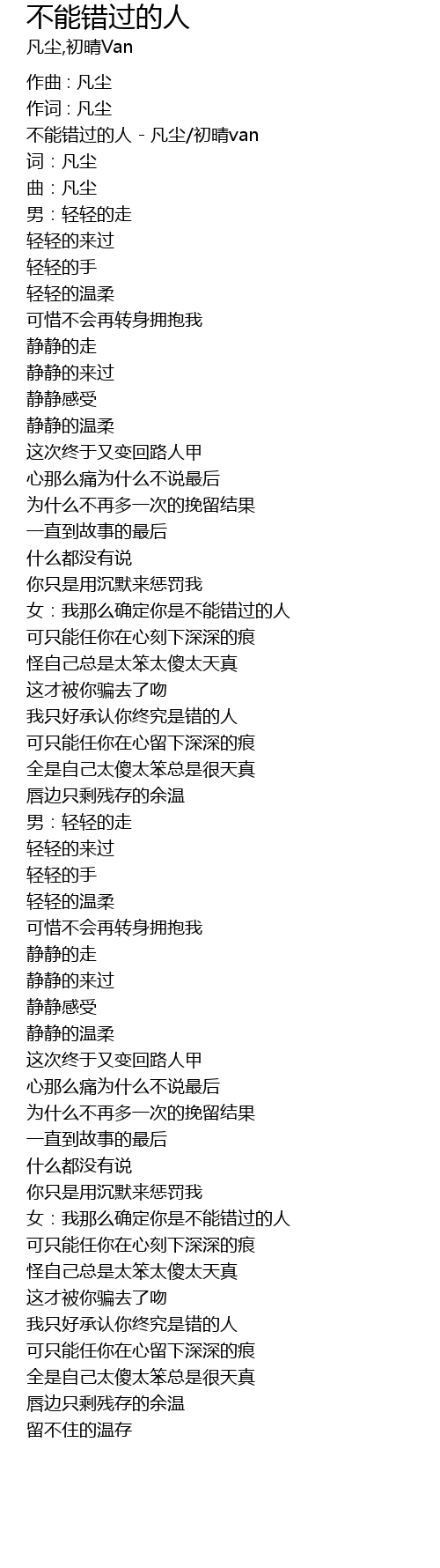 | nǚ: wǒ nà me què dìng nǐ shì bù néng cuò guò de rén | |