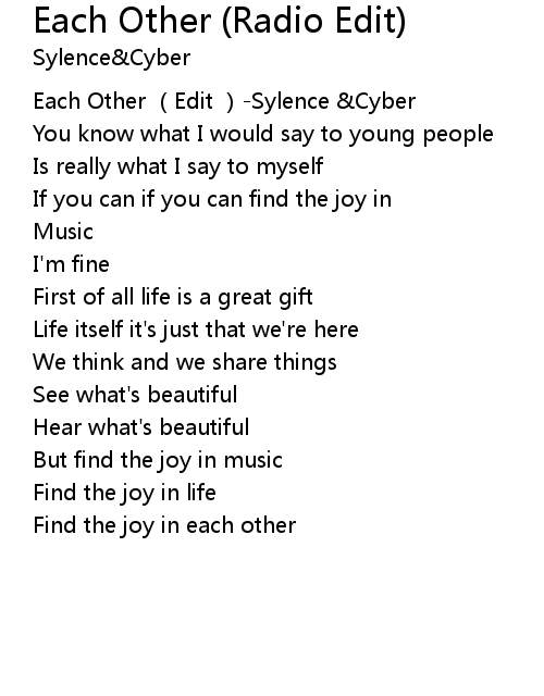 | [00:00.00] | Each Other (Edit )-Sylence &Cyber |