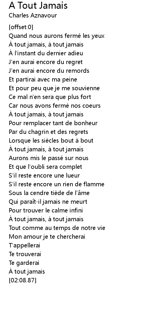 | [00:54.19] | Pour remplacer tant de bonheur |