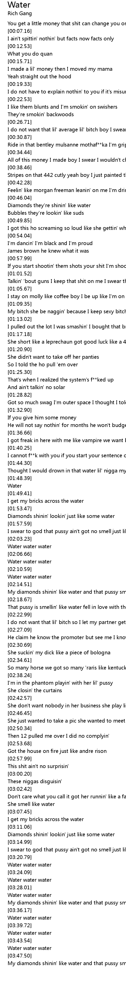 My diamonds shinin' like water and that pussy smellin' like water |