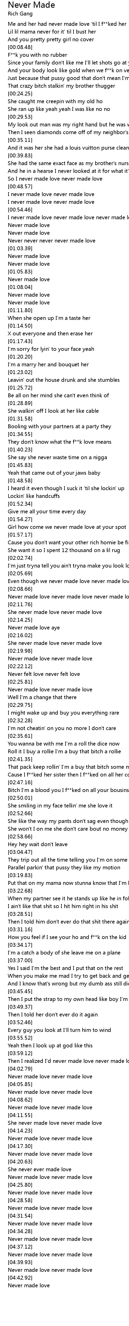 I never made love never made love never made love |