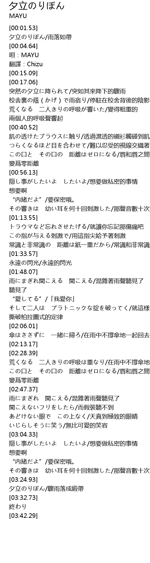 | [03:26.13] | 夕立のりぼん/驟雨落成緞帶 |