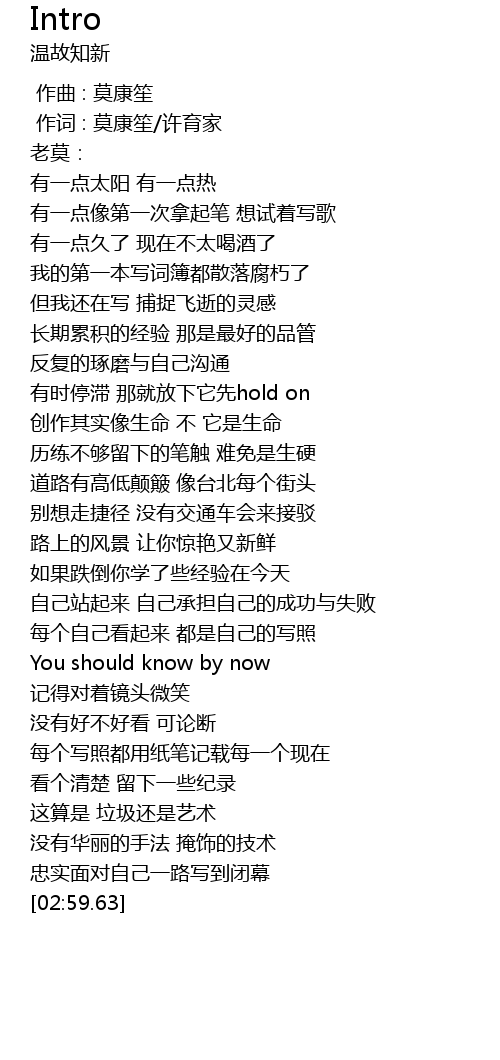 | [00:00.00] | 作曲 : 莫康笙 |