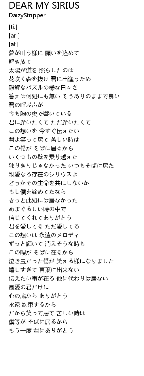 | [01:39.75] | 親愛なる存在のシリウスよ |