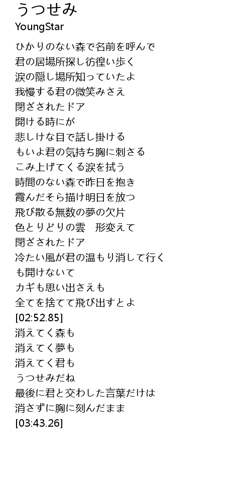 | [00:21.49] | ひかりのない森で名前を呼んで |