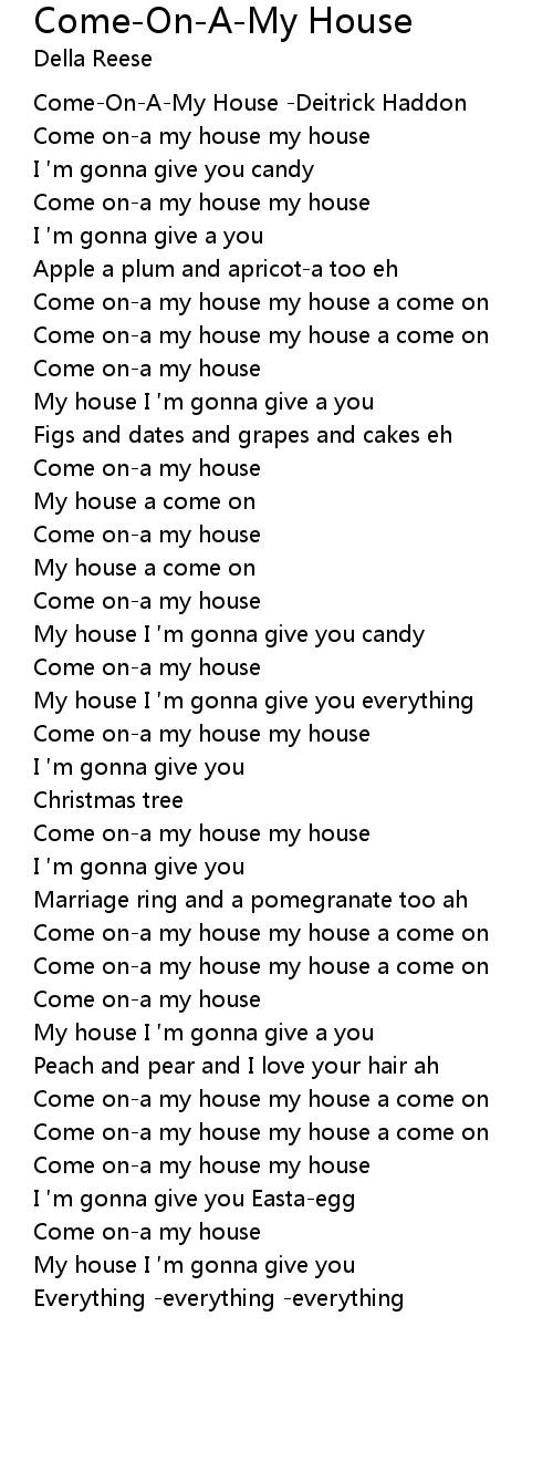 | [00:00.883] | Come-On-A-My House -Deitrick Haddon |
