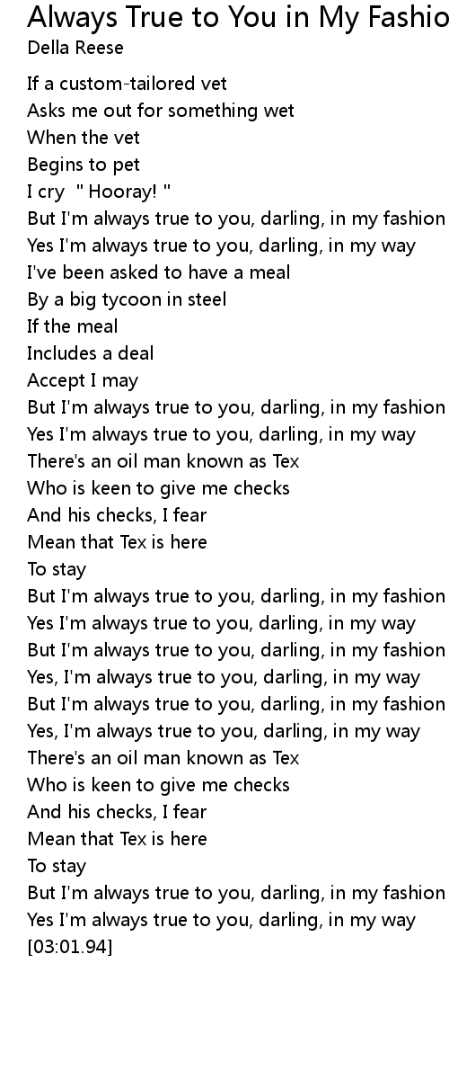 | [01:58.30] | Yes, I'm always true to you, darling, in my way |