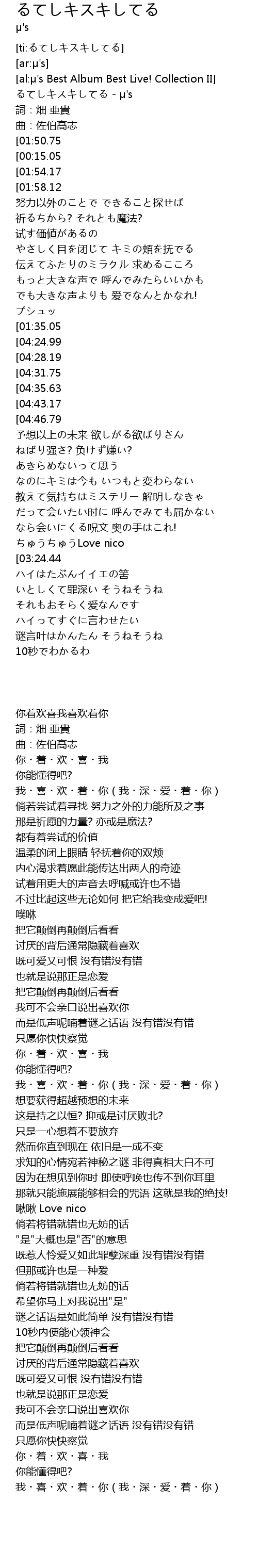 | [00:00.55] | るてしキスキしてる - μ's |