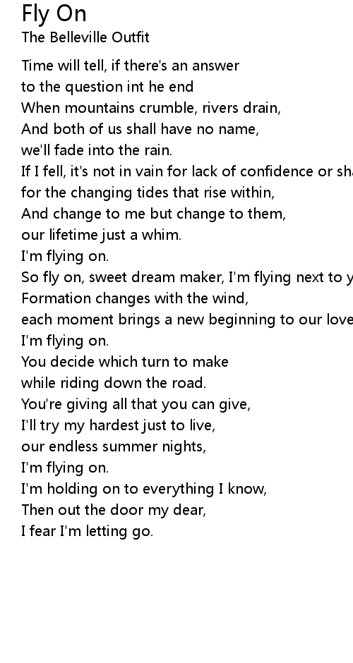 So fly on, sweet dream maker, I'm flying next to you. |