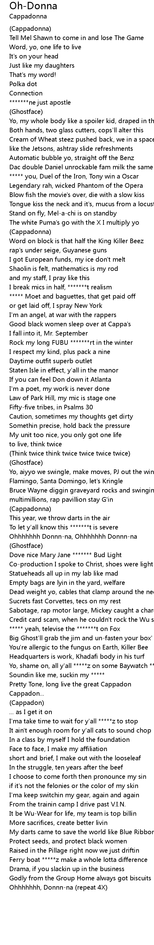 Ohhhhhhh, Donnn-na (repeat 4X) |