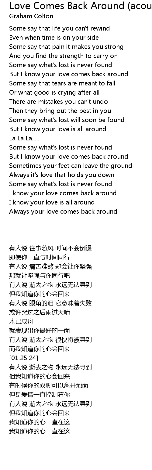 Love Comes Back Around (acoustic) - unplug Lyrics