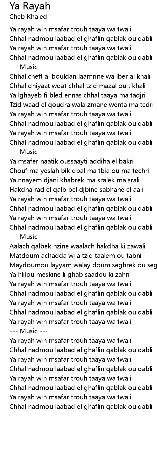 Ya lghayeb fi bled ennas chhal taaya ma tadjri |