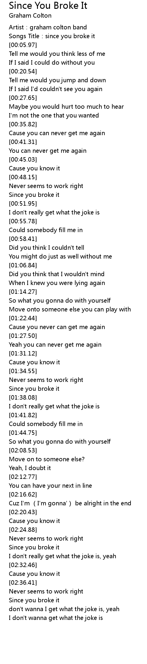 | [01:36.65] | Since you broke it |