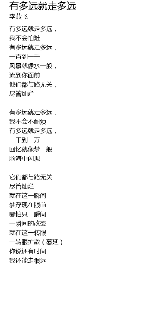 | yǒu duō yuǎn jiù zǒu duō yuǎn, | |