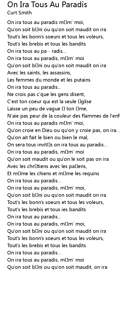 | Song | On Ira Tous Au Paradis |