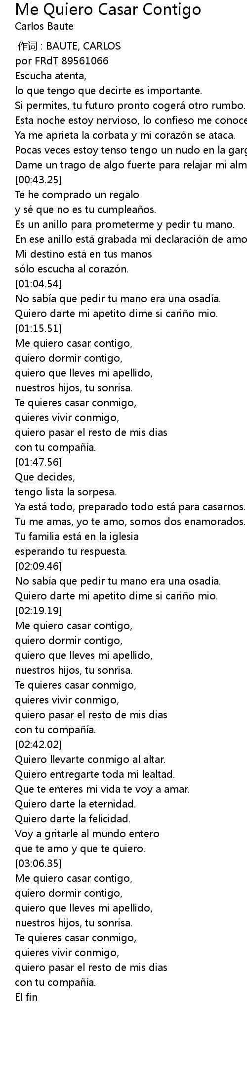 | [02:42.72] | Quiero llevarte conmigo al altar. |