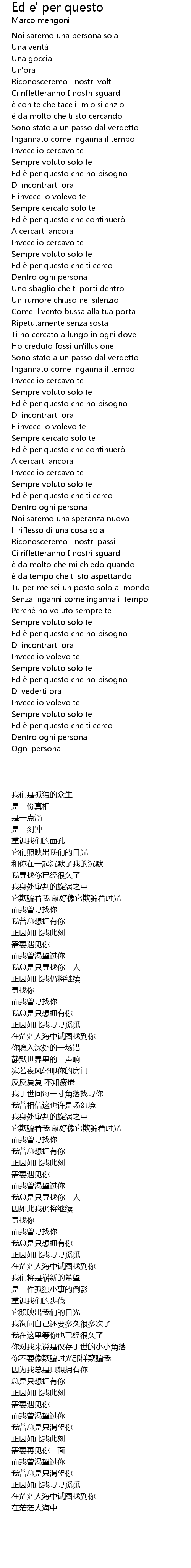 | Song | Ed e' per questo |