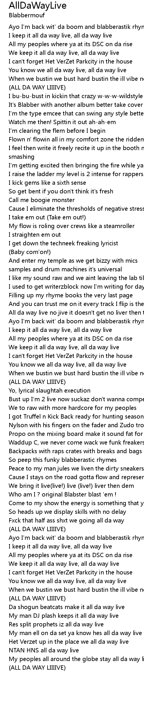 Ayo I'm back wit' da boom and blabberastik rhymes |