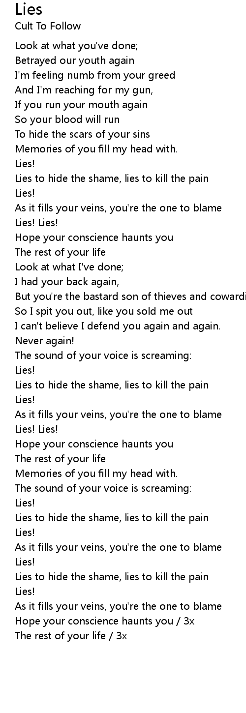 Lies to hide the shame, lies to kill the pain |