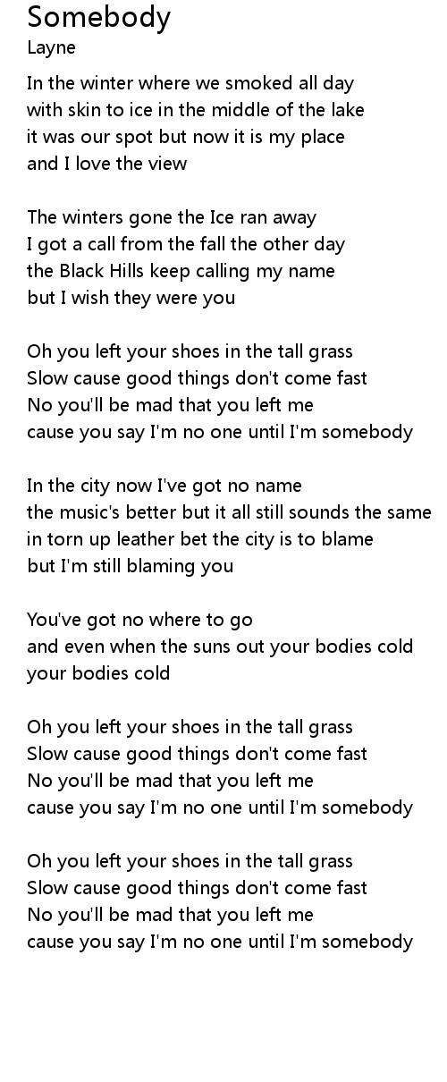 | [02:18.44] | Oh you left your shoes in the tall grass |