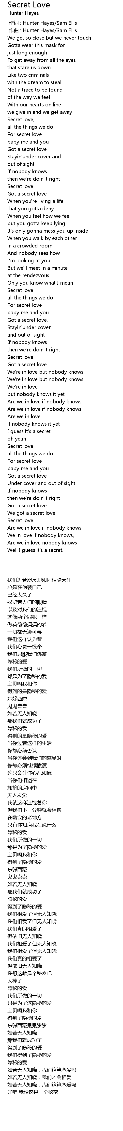 | [00:01.000] | zuo qu : Hunter Hayes Sam Ellis |