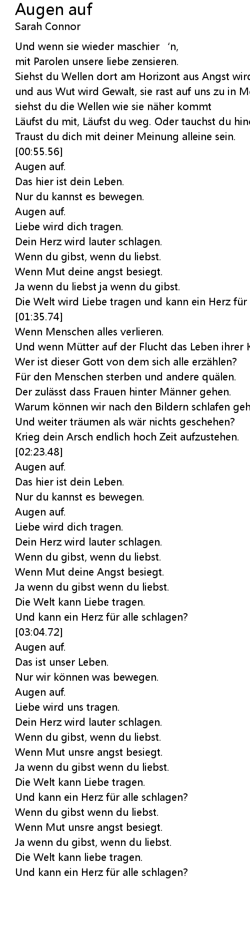 | [00:55.85] | Augen auf. |