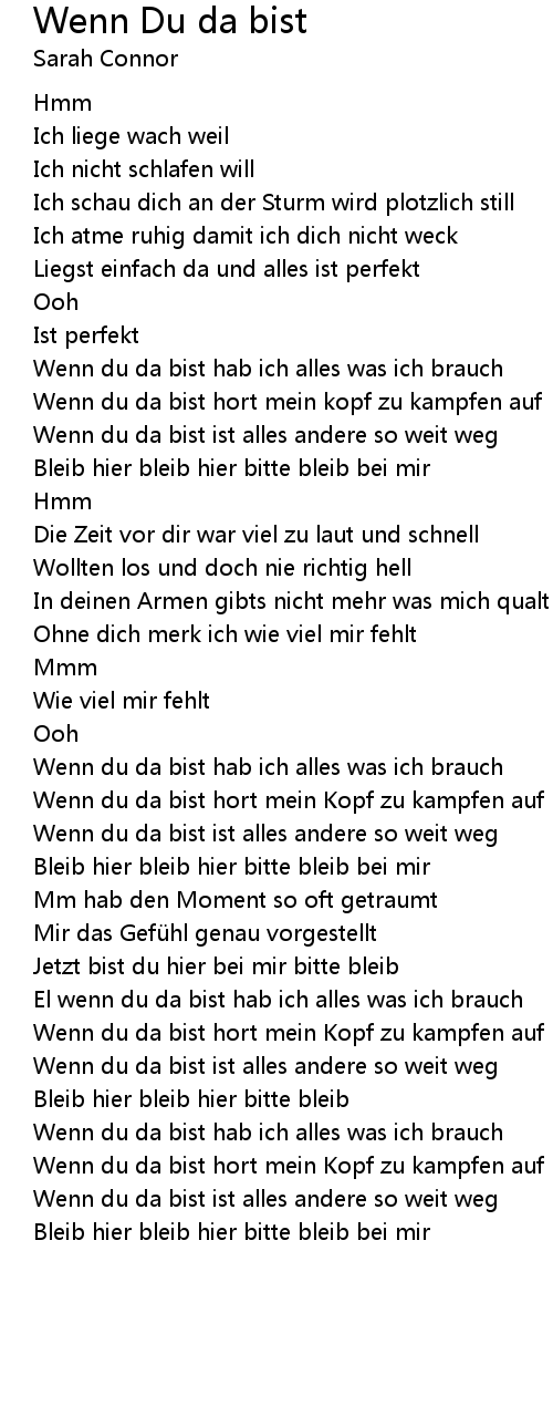 | [01:40] | Wenn du da bist hab ich alles was ich brauch |