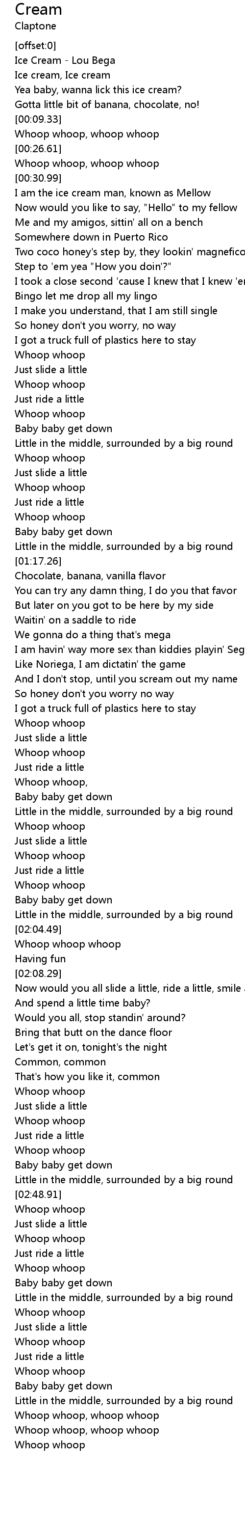 | [00:05.09] | Yea baby, wanna lick this ice cream? |