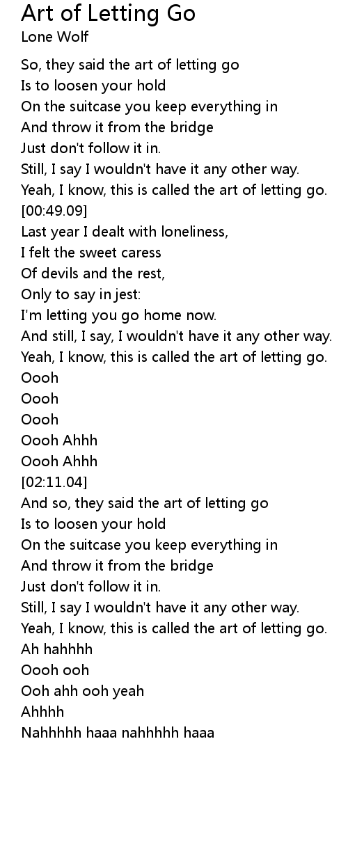 | [02:49.97] | Yeah, I know, this is called the art of letting go. |