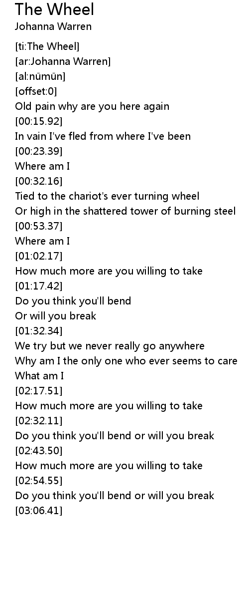 | [00:39.40] | Tied to the chariot's ever turning wheel |