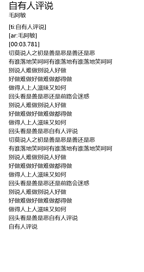 | [03:55.281] | huí tóu kàn shì shàn shì è zì yǒu rén píng shuō |
