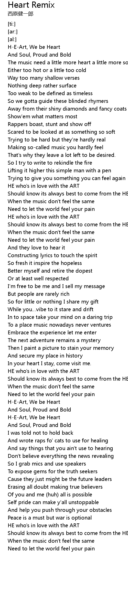 | [02:00.13] | H-E-Art, We be Heart |