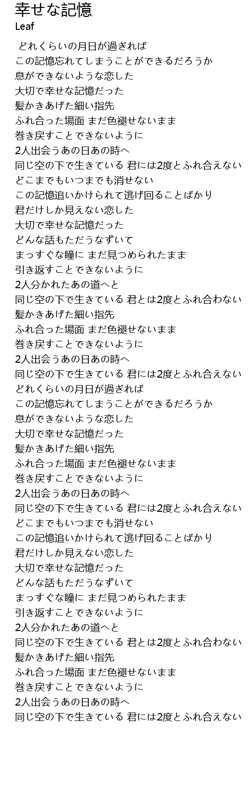 | [03:16.520] | 巻き戻すことできないように 2人出会うあの日あの時へ |