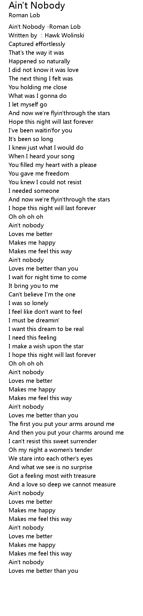 | [03:16.512] | Ain't nobody |