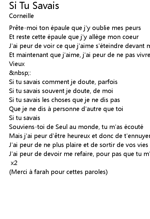 | Prête-moi ton épaule que j'y oublie mes peurs | |
