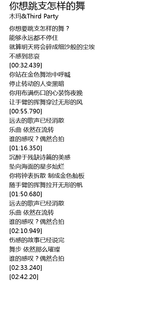 | [02:23.10] | 谁的感叹?偶然合拍 |