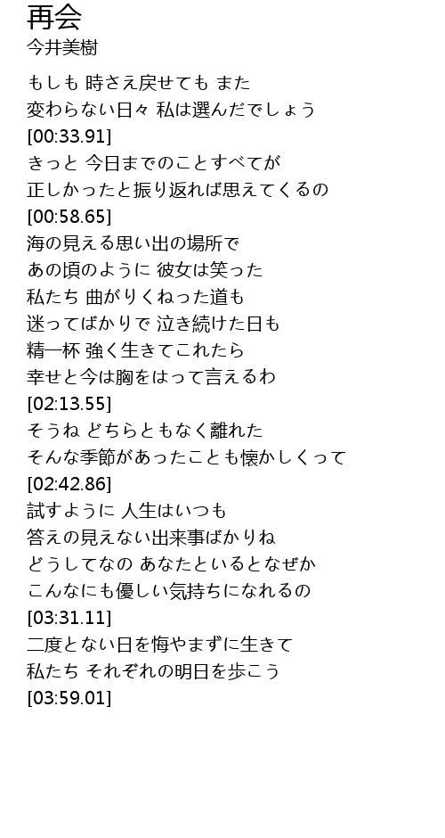 | [03:32.36] | 二度とない日を悔やまずに生きて |