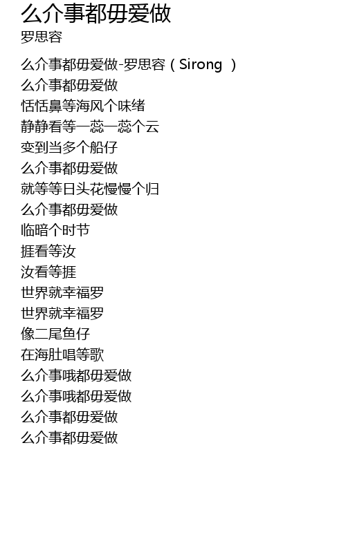 | [00:00.00] | 么介事都毋爱做-罗思容(Sirong ) |