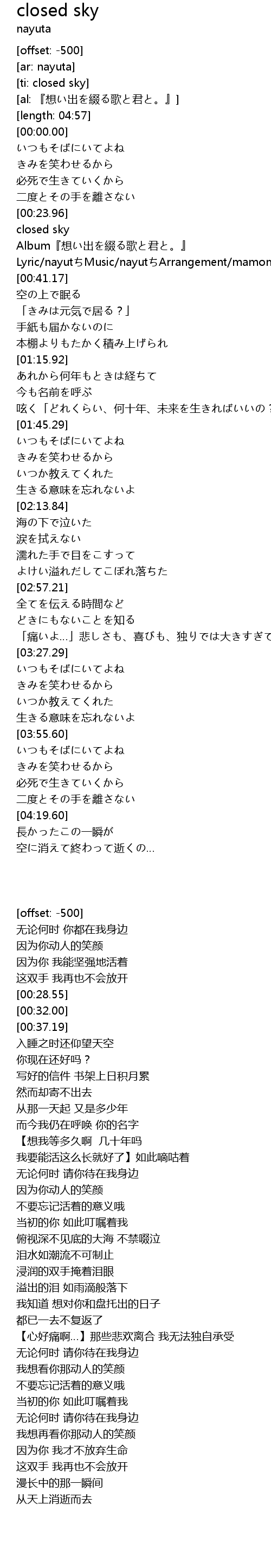 | [04:34.54] | 空に消えて終わって逝くの… |